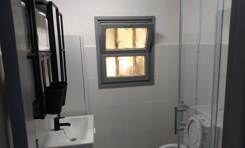 Un bany amb dutxa i WC.