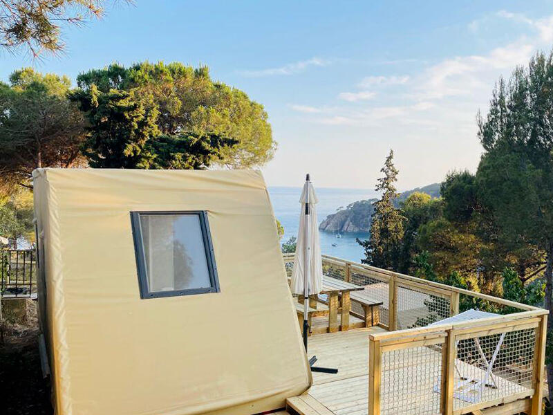 Per als amants del glamping, els encantarà aquest tipus de tenda per a un aforament de 4 persones, amb una bonica vista al mar, gaudiran plenament de la seva experiència d'acampada, amb tota la comoditat.