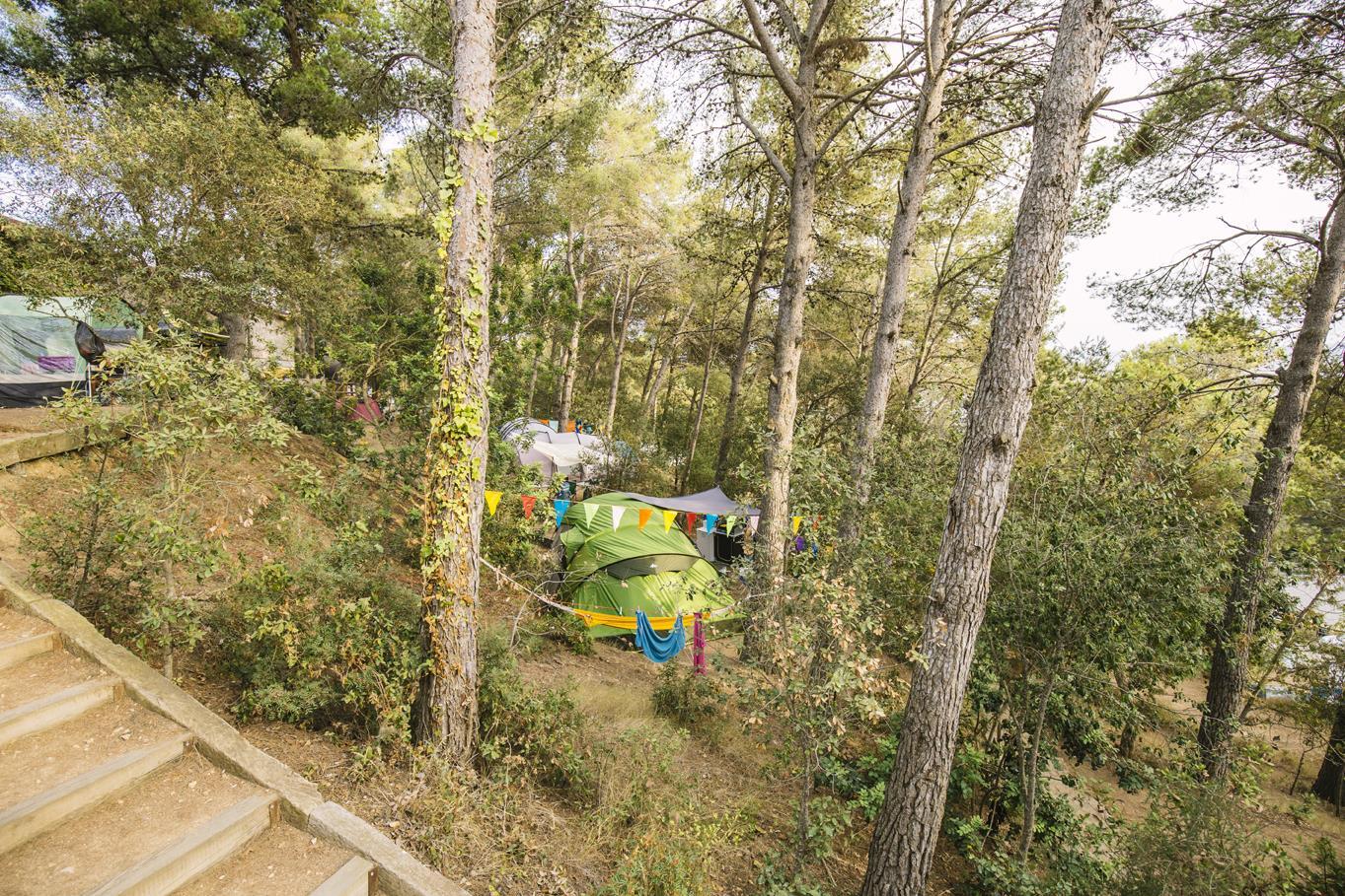 Els emplaçaments de tenda (només accessibles a peu / en el moment de la reserva cal indicar les mides de la tenda). Els emplaçaments són principalment a l'ombra de pins, alzines i garroferes. Estan situats en zones tranquil·les i lluny de les carreteres locals.