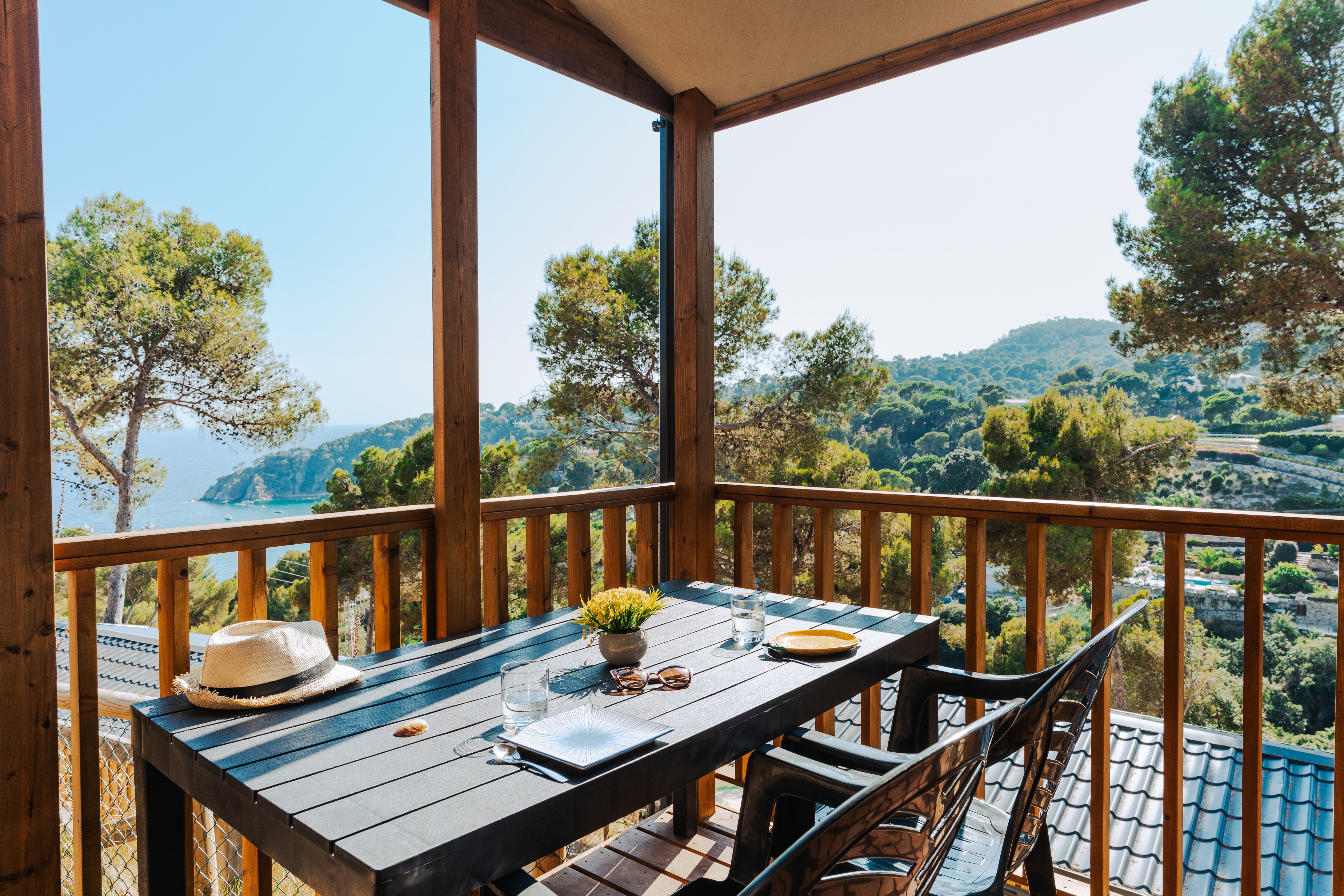 No hi ha plaça d'aparcament al costat de l'allotjament, accés a peu per les escales, 1 cotxe gratuït per allotjament, aparcament a prop dins del càmping.