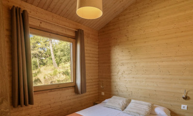 Els Ecolodge Prestige de 2 habitacions són per a un aforament de 5 persones. Estan situats a l'entrada del càmping, a la zona més tranquil·la. Tenen vista al jardí.
