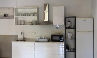 The kitchen is fully equipped and furnished: Nespresso coffee machine, kitchen utensils and household items.