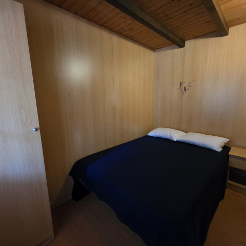 A double bed (140 x 190 cm). Bed linen and towels are not provided (blankets and pillows included).