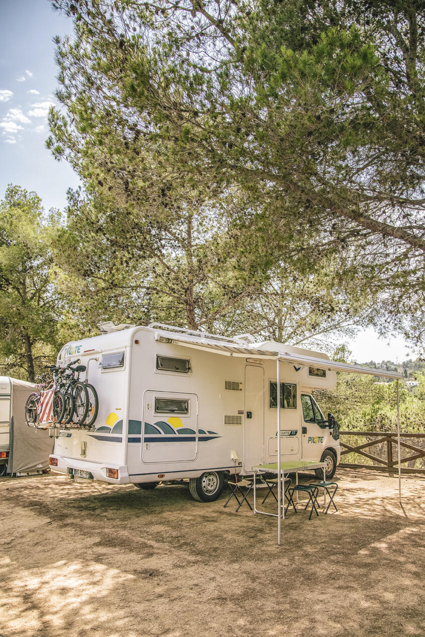 Caravan sites are mostly in the shade of pines, oaks and carob trees. They are calm and away from local roads. The size of the pitches is very variable, which is why we ask to specify the size of your caravan. The pitches are located on the beach side, and on foot it is possible to access 3 coves and a large beach named Playa de Llorell, to take into account that the path is quite sloping and with stairs.