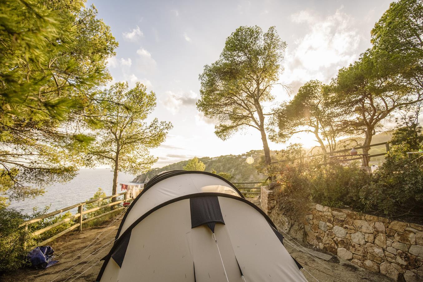 Are mostly in the shade of pines, oaks and carob trees and with views of Llorell beach or one of the coves at the bottom of the campsite. They are calm and away from local roads. Most of the pitches are not accessible by car, as we want to preserve the natural and wild setting of the campsite, so you will have to walk there. The pitches are located on the beach side, and on foot it is possible to access 3 coves and a large beach named Playa de Llorell, to take into account that the path is quite sloping and with stairs.