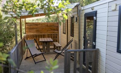 El Cottage Prestige de 2 habitaciones (31m²) es un modelo para un aforo de 4 personas. Vista hacia el jardín.