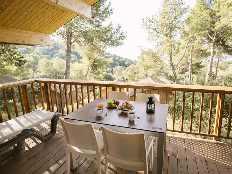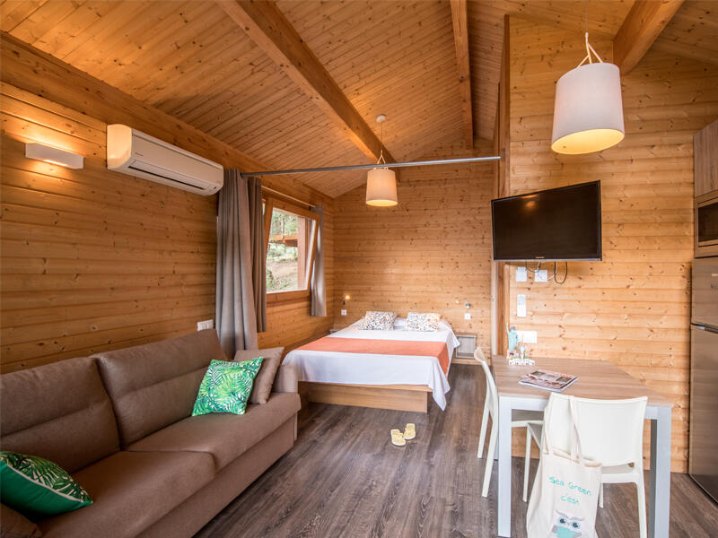 Los Ecolodge Prestige de 1 habitación son ideal para una pareja; es para un aforo de 2 personas, están situados en la entrada del camping, en la parte más tranquila del camping, vista al jardín.