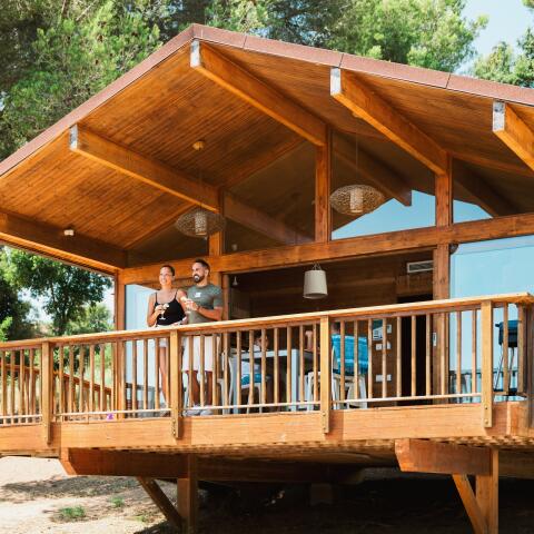 Les 45 chalets Privilège, sont les hébergements les plus confortables du CALA LLEVADO. Conçus comme des chalets en bois naturel ils sont répartis en terrasse sur le camping.