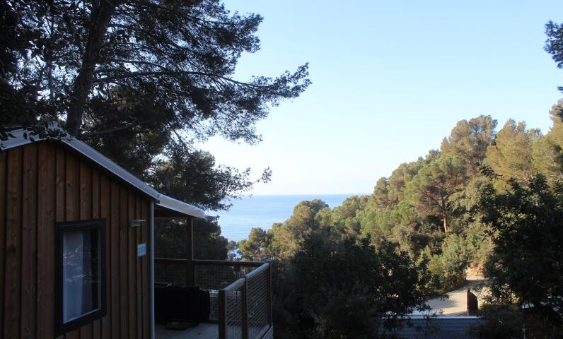 Les Cottage sont situés dans la partie centrale du camping zone B couleur jaune, et offrent une vue partielle sur la Méditerranée.