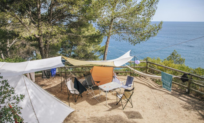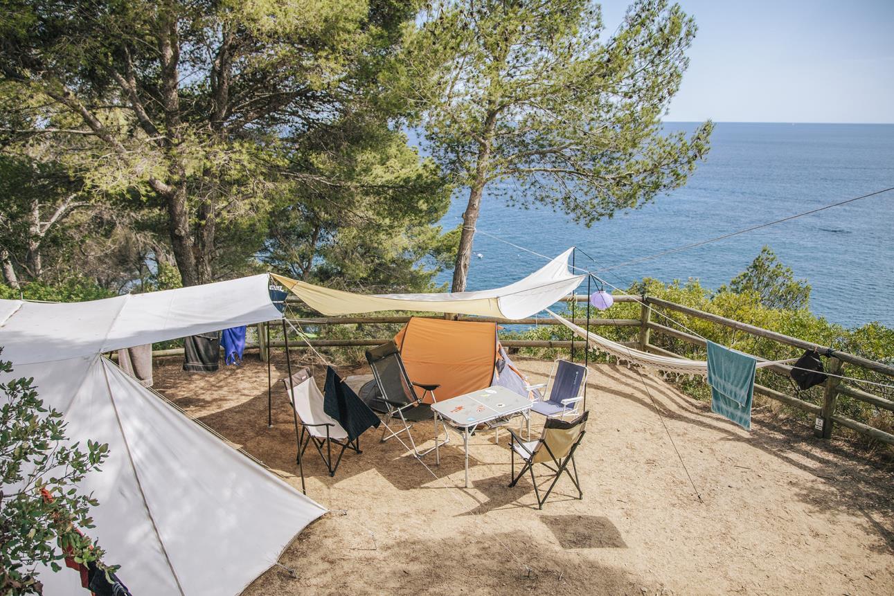 Se situent pour la plupart à l'ombre des pins, chênes et caroubiers et bénéficient d'une vue sur la plage de Llorell ou bien sur l'une des criques situées en bas du camping. Ils sont au calme et à l'écart des routes locales.