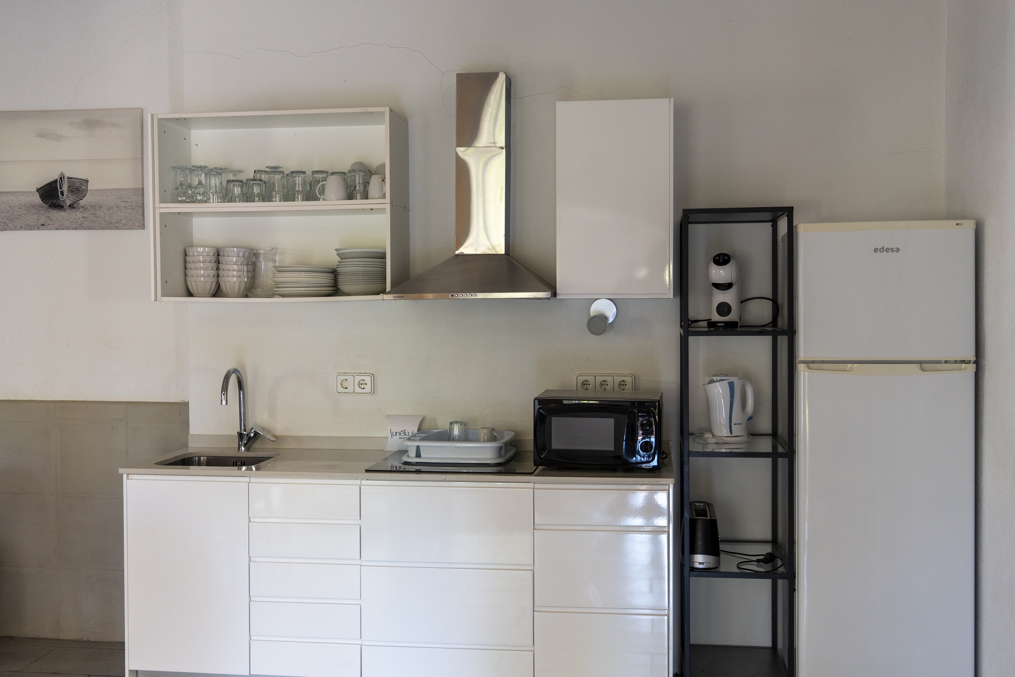 De keuken is volledig uitgerust: Nespresso-koffiezetapparaat, keukengerei en huishoudelijke artikelen.