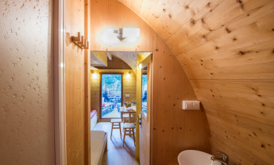 De boshutten zijn uitgerust met: